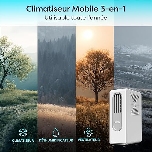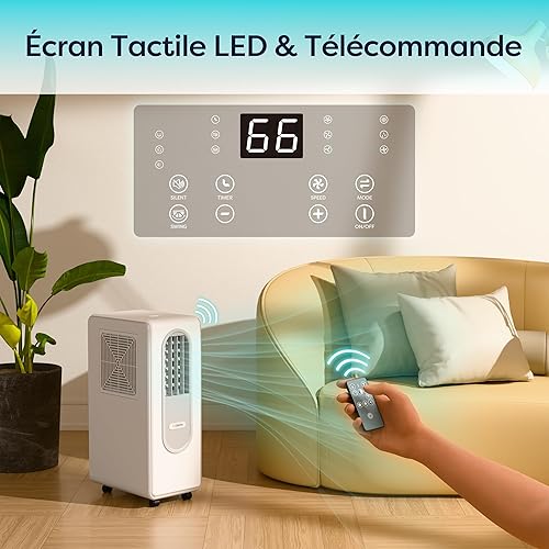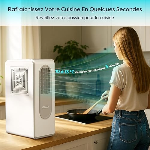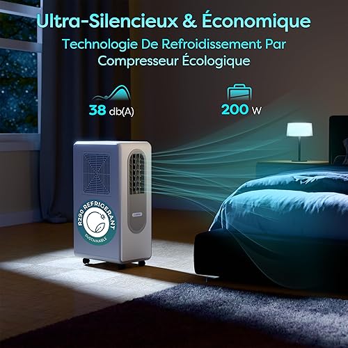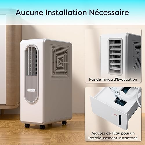 Ciarra Climatiseur Mobile avec Réfrigérant R290 Écologique - 3 en 1 Froid & Ventilation & Déshumidification - Mode Veille - 38 dB - Écran Digital - Aucune Installation Requise - CBPAC59-W
