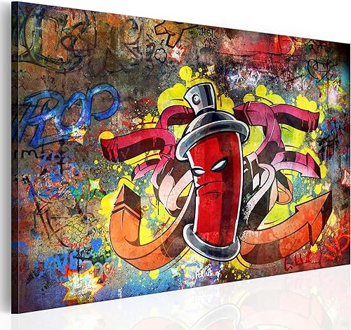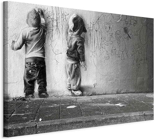 B&D XXL - Tableau décoratif inspirant 60x40 cm - Impression sur toile en noir et blanc - Décoration murale - Artistique pour enfants graffiti urbain moderne papier peint i-B-0024-b-b