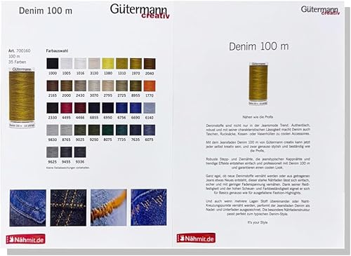 Nähmit Gütermann DENIM Fil à coudre en jean de qualité supérieure et indéchirable 100 m + carte couleur gratuite (A06-1310)
