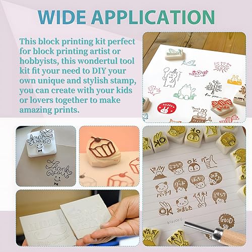LALAGO Bloc de Gravure pour Tampons en Caoutchouc avec Gouges de Gravure, Kit de Démarrage pour Impression Sur Bloc, Fabrication de Tampons