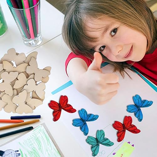 Lot de 50 disques papillon en bois de 60 mm - Décoration en bois - Papillon en bois à peindre, pour mariage, artisanat, bricolage, peinture, décoration, cadeau, scrapbooking