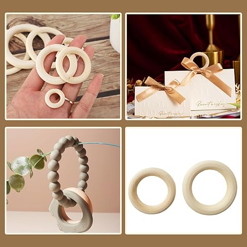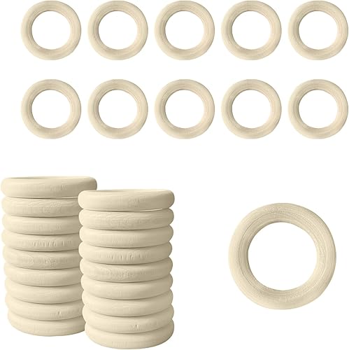ONEBO 48 Pièces Anneaux en bois naturel, Anneaux en Bois Naturel, pour Loisirs Créatifs, Bricolage, Déco, Fabrication de Bijoux, Anneau de Dentition Bois (Diamètre Extérieur 33 mm)