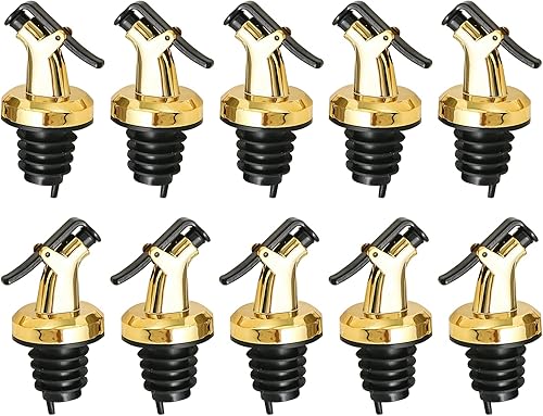 Lot de 10 distributeurs d'huile et de vinaigre - En or - Pour porte-bouteilles - Bouchon en caoutchouc - Distributeur d'huile - Pour bouteilles, Universelle