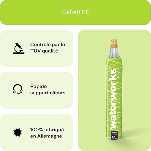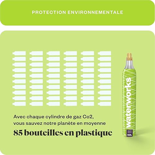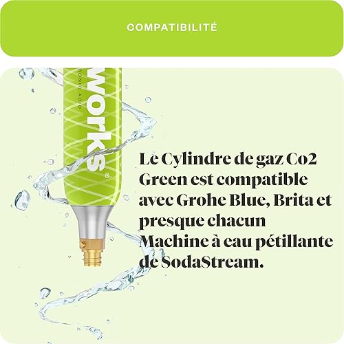 waterworks Green Set de 3 cylindres de CO2 I Convient pour SodaStream (pas Quick Connect*), Grohe Blue, Aarke, Brita, WasserMaxx etc. Machine à gazéifier jusqu'à 60 l par remplissage