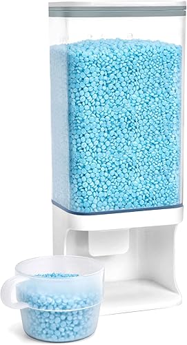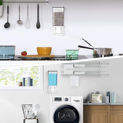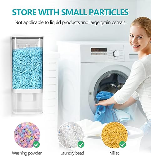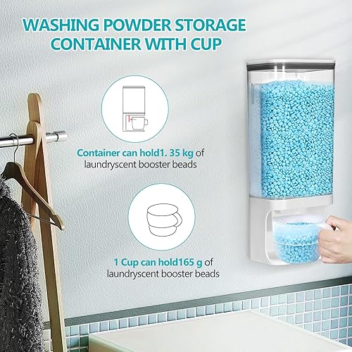 Uennm 1.5L Distributeur de Parfum Mural Distributeur de détergent - Accessoires de buanderie - Boîte de Rangement avec 1 Verre doseur pour Parfum à Linge - Poudre à lessive - Petit Grain Solide