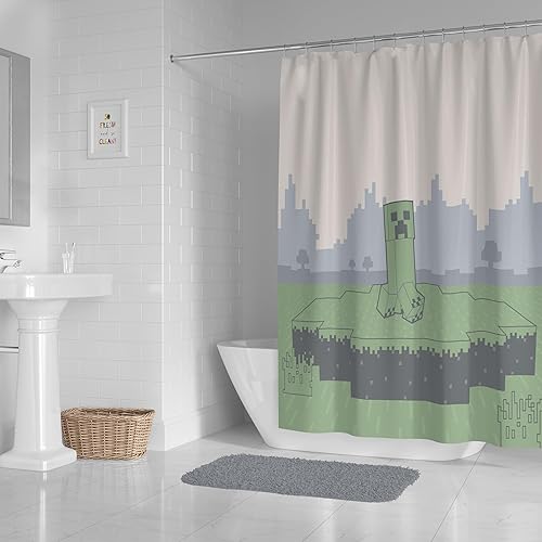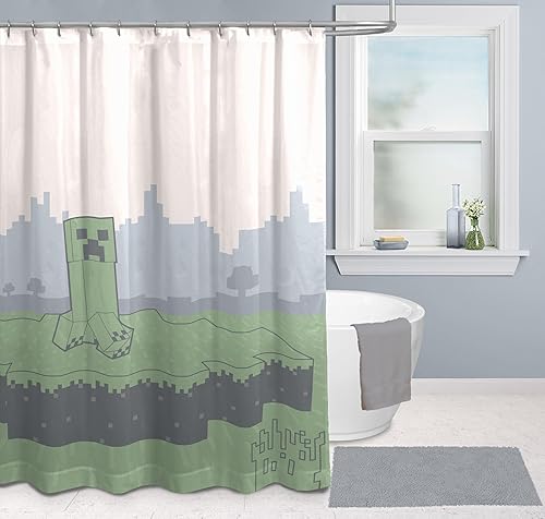 Jay Franco Rideau de Douche Minecraft Creeper 178 x 182 cm - Décoration de Salle de Bains à Motif Jeu vidéo en Tissu