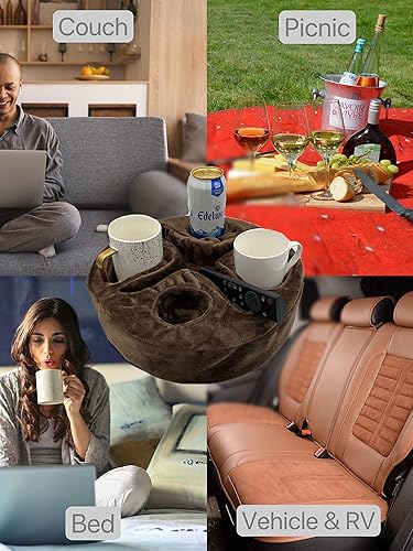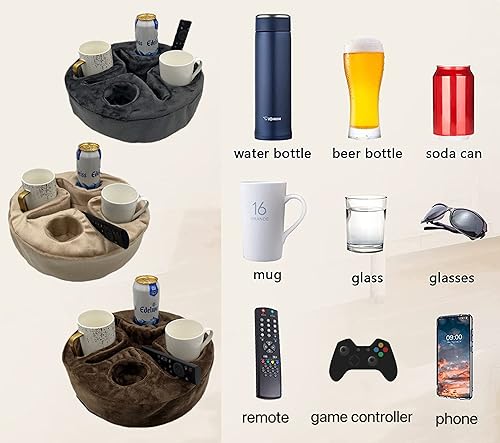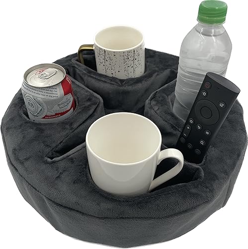 Forzaddik Coussin porte-gobelet pour canapé et lit, organisateur de canapé pour boissons, télécommandes, téléphones, collations (gris)