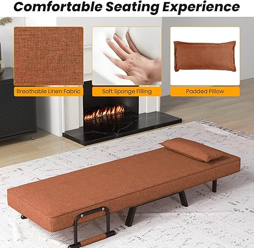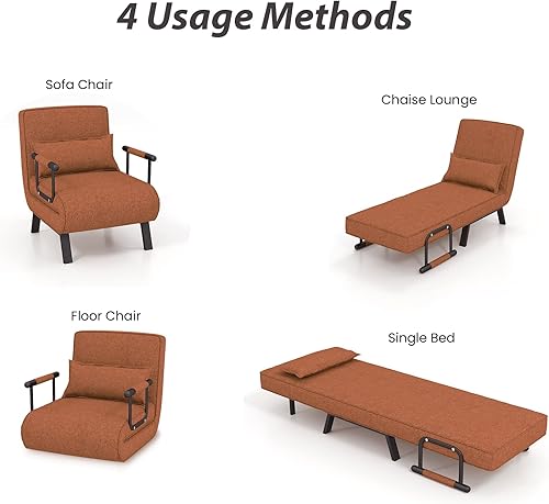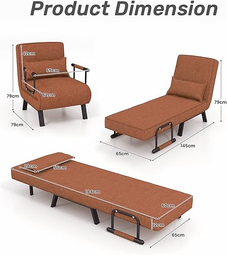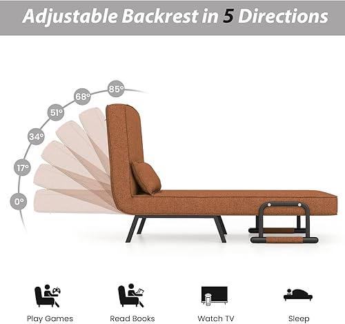 LIFEZEAL Fauteuil Convertible 1 Place Pliable avec Dossier Réglable en 5 Positions, Chauffeuse Convertible Adulte avec Coussin, Canapé- Lit pour Salon, Appartement, Bureau, Jusqu'à 150 kg (Marron)