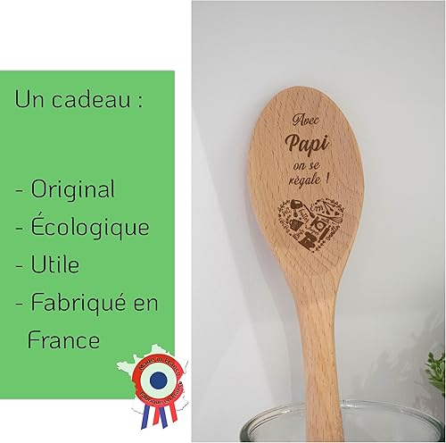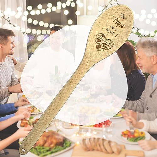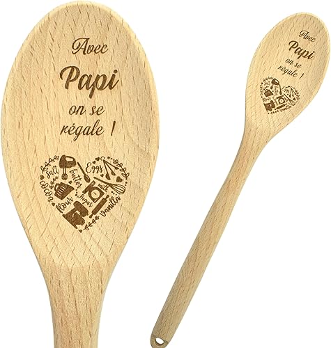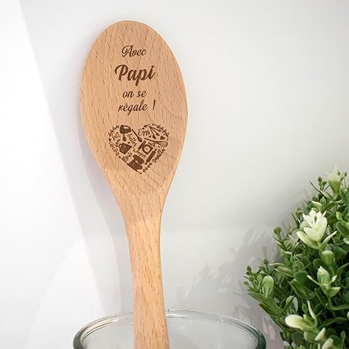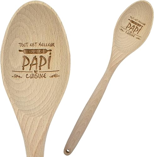 ERNESTINE - Cuillère en bois Papi cuisine personnalisée avec texte - cadeau papi cuisine - cadeau papi anniversaire Noël fête des grands pères - ustensile bois naturel gravé - fête papi spatule bois