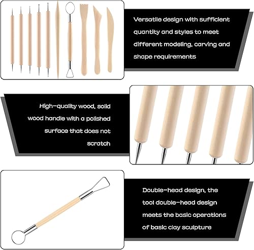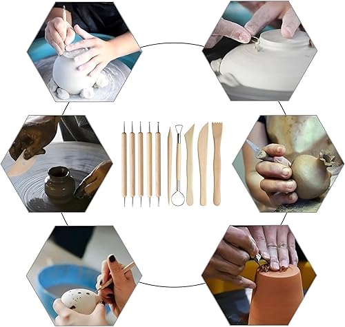 pcsfoe Lot de 10 outils d'argile, outils de modélisation, outils de poterie, outils de modelage d'argile, outils de sculpture, outils de modélisation d'argile pour bricolage, artisanat, poterie,