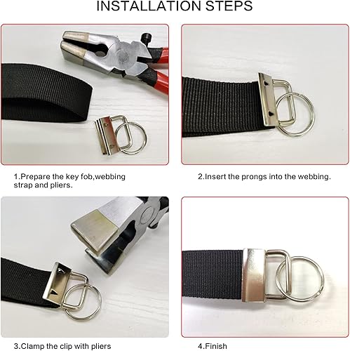 EMSea 50pcs Quincaillerie pour Porte-clés 1 Pouce Lanière Matériel de Porte-clés avec Outil de Pince Porte-clés pour Porte-clés et Fournitures de Matériel de Serrage de Bracelet