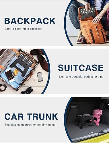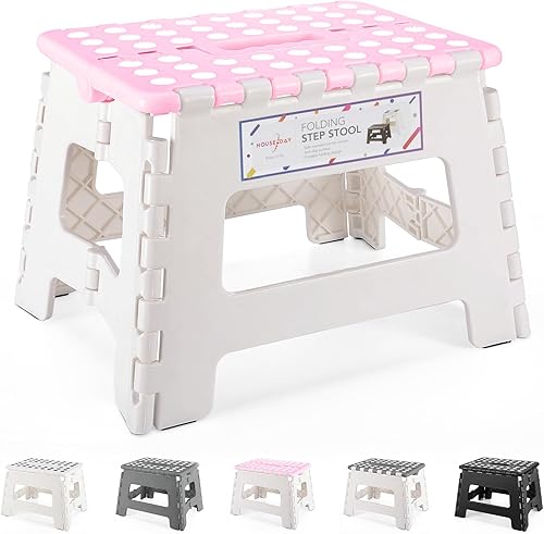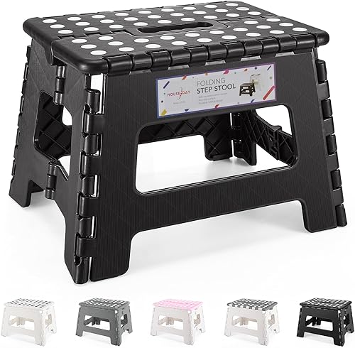 HOUSE DAY Tabouret Pliant Noir 22cm, Marchepied Pied Pliable, 150kg Capacité, Léger et Compact pour Cuisine, Salle de Bain, Jardinage