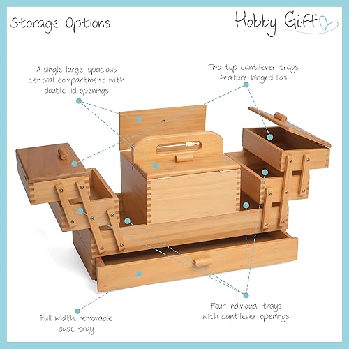 Hobby Gift Boîte de rangement en bois pour loisirs créatifs en porte-à-faux à plusieurs niveaux, 4 niveaux, 23,5 x 45 x 32 cm