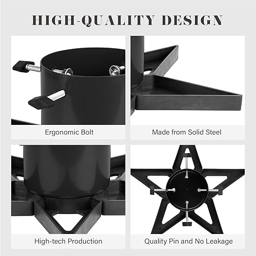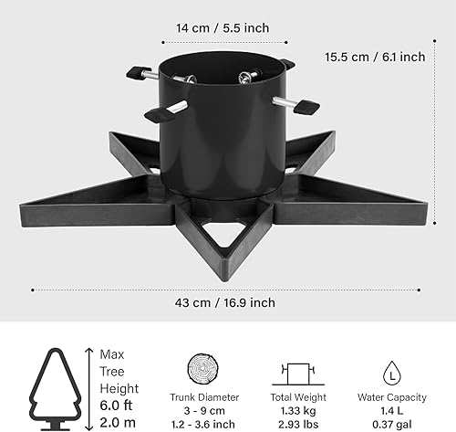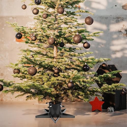 Support de sapin de Noël en forme d'étoile avec réservoir d'eau pour sapins et pins vivants, base en métal stable avec pieds en plastique robuste, décoration de vacances amusante et colorée, support