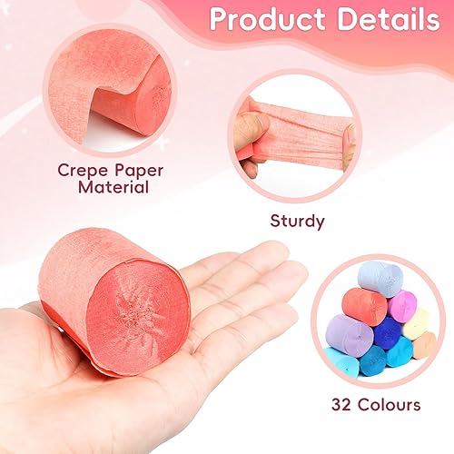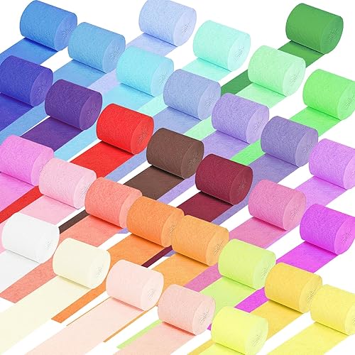 32 Rouleaux Papier Crépon HXC 4,5 cm x 10 m Papier Crepon 32 Couleurs pour Fête d'anniversaire Mariage Carnaval Fête Décoratif