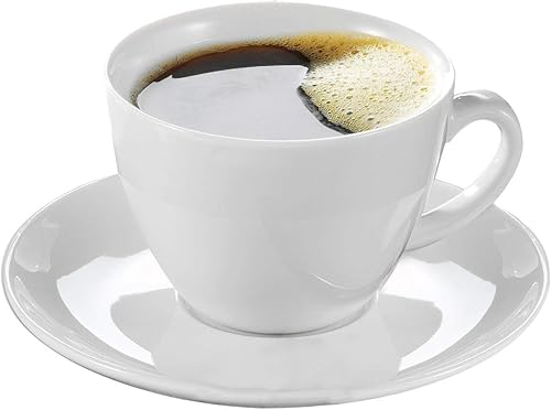 Esmeyer Bistro - Service de 6 Tasses à café 0,20 l, avec sous-Tasse Forme Bistro - UNI Blanc Forme d'anse Ronde, Hauteur 6,5 cm, diamètre 14,0 cm