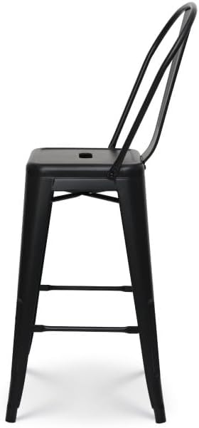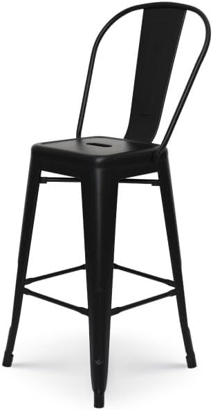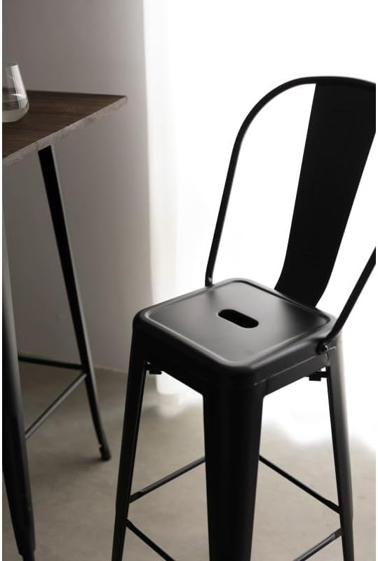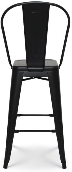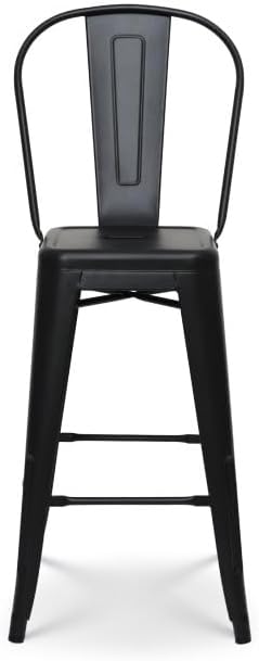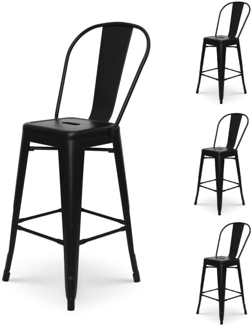 Lot de 4 tabourets de Bar en métal Noir Mat Style Industriel - Dossier Haut - Hauteur 66cm