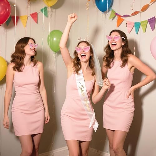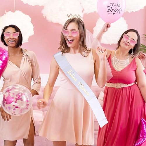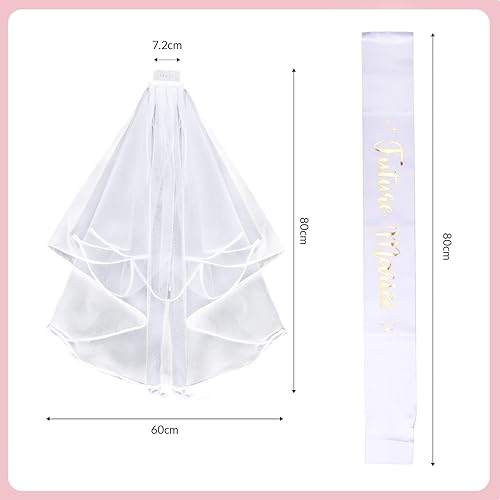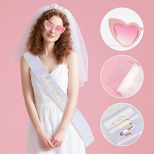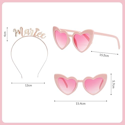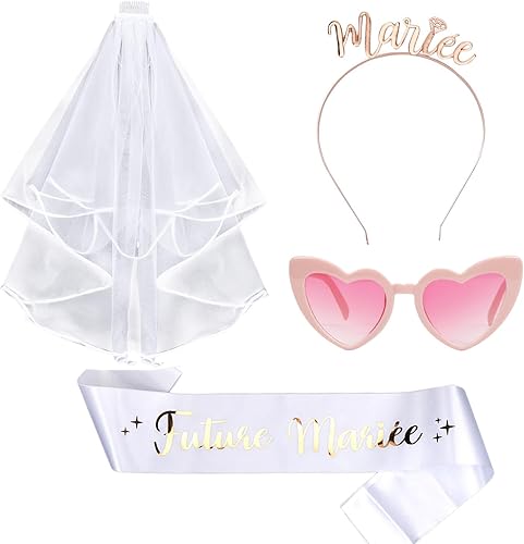 EVJF Accessoire Kit,4 Pièces Bride to Be Accessoire - Voile Mariée Blanc,Or Rose Couronne,Echarpe Evjf,Rose Lunette Coeur,Accessoire Evjf Team Bride,pour Enterrement de Vie Jeune Fille