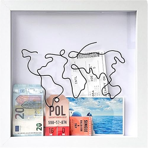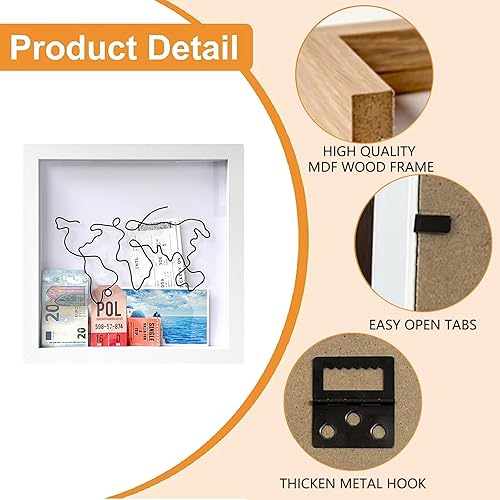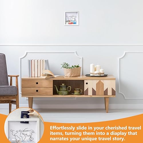 MOROBOR Boîte à souvenirs de voyage de 20 x 20 cm, 1 cadre photo pour mur et table, boîte à souvenirs en bois pour souvenirs, passeport, tickets et photos