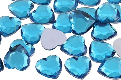 Allstarco 18mm Blue Aqua H109 Flat Back Heart Acrylic Rhinestones Plastic Gems Plastic Costume Jewels Embelishments - 30 Pieces