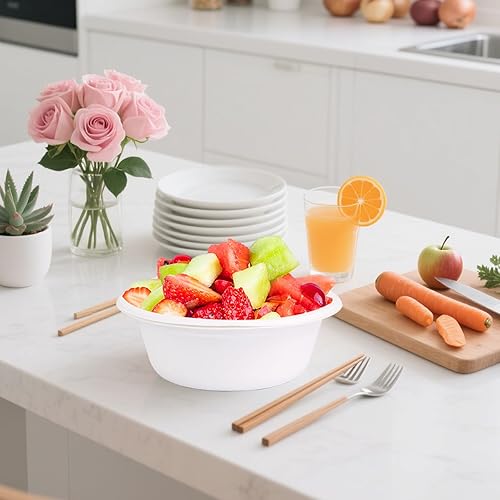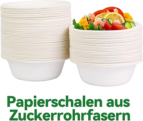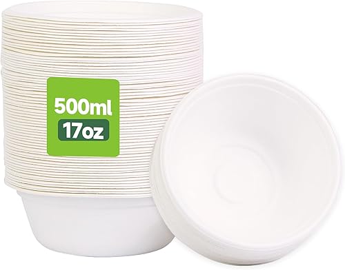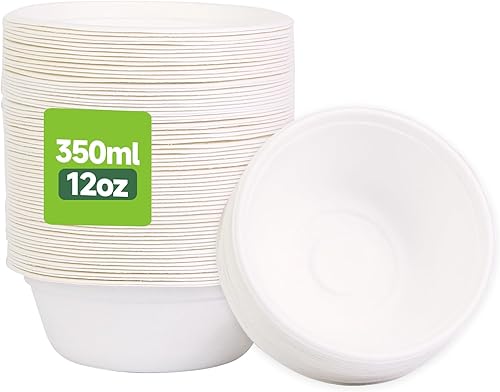 HiEnjoin 60 bols à soupe en canne à sucre, 260 ml, jetables et compostables, biodégradables, pour fête, mariage, pique-nique