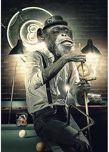 Blanriguelo Impressions sur Toile Singe Jouant au Billard Peinture Photo Art Mural Affiches Non tissées Salon Chambre Décor à la Maison 23,6'x 35,4' (60x90cm) sans Cadre