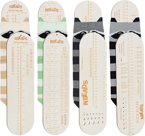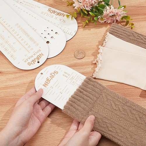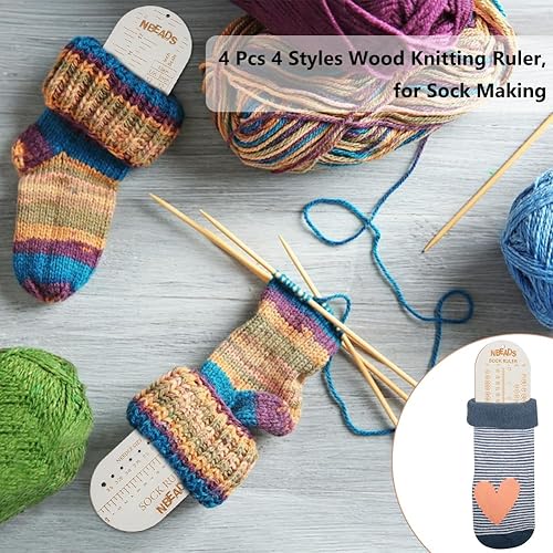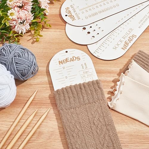 NBEADS 4 Pcs 4 Styles Règle à Tricoter en Bois, 13.78x0.39x0.1 Pouce Wood Sock Ruler Knitting Crochet Aiguille Outils de Tissage DIY pour le Tricotage et la Fabrication de Chaussettes