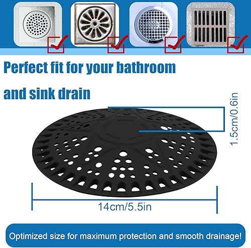 BOXOB 2pcs Attrape-Cheveux pour Drain de Douche, Couvercle de Siphon Sol en Silicone Anti-Obstruction pour Douche Baignoire Salle Bain et Lavabo (Noir)