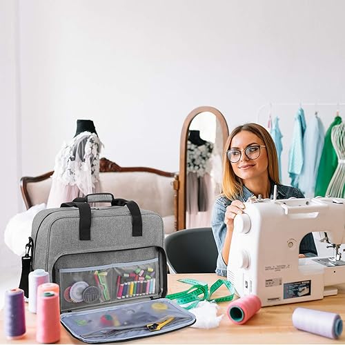 Yarwo Sac pour Machine à Coudre, Sac de Transport pour Machine à Coudre, Convient à la Plupart Majeur Machine à Coudre, avec Fond antidérapant et rembourré épais Interne, Gris