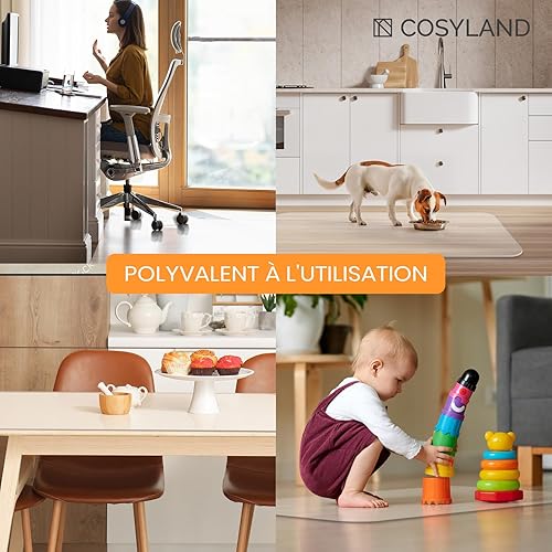 COSYLAND Tapis Chaise de Bureau Effet Givré 90x120cm, Tapis de Sol Bureau Antidérapant, Tapis Protection Sol Chaise Bureau, Protège-Parquet pour Sols Durs