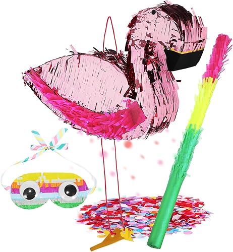 BESPORTBLE 1ensemble Pinata Flamant Masque Décoration De Fête Complète Pour Anniversaire Piñata À Remplir De Bonbons Accessoires Inclus Pour Événements Festifs