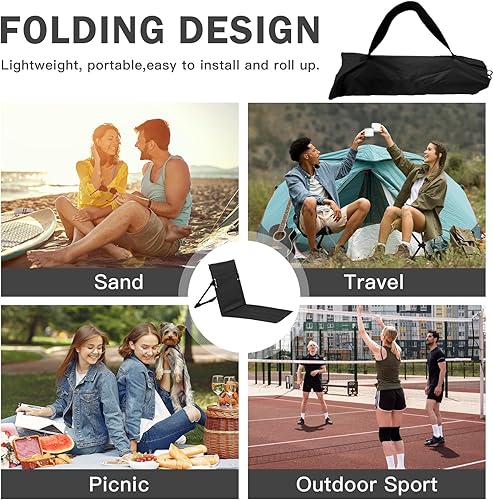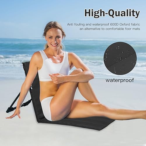 Bocguy Chaise de sol, avec support dorsal, tapis de plage pliable, coussin d'assise d'extérieur pour trekking, accessoires de camping (noir)