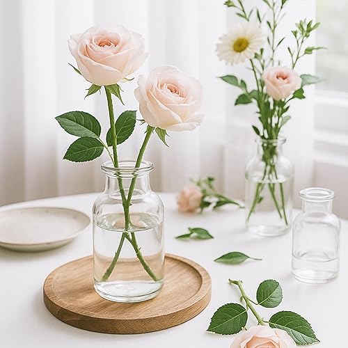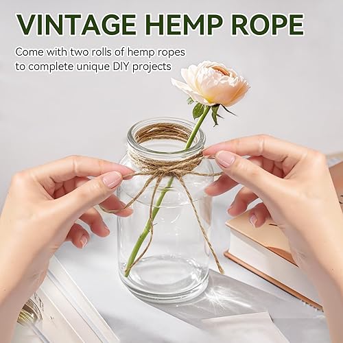 Lot de 16 Petit Vase Mini Vases en Verre de 10 cm de Haut 125 ML avec Ficelle de Jute de 20 m pour Mariage, Cuisine, Salle à Manger, Salon, Salle de Bain, Anniversaire, Fête, Décoration de Table