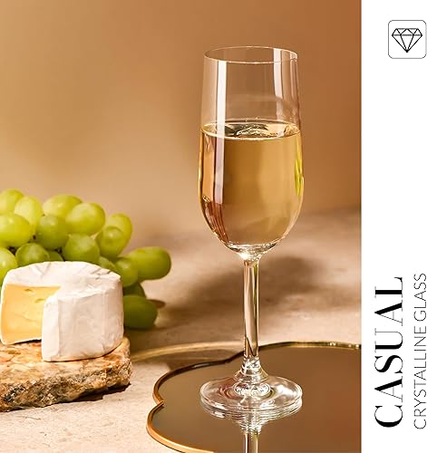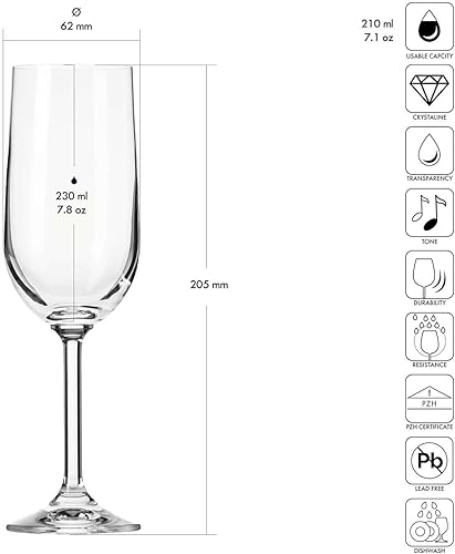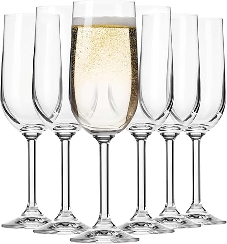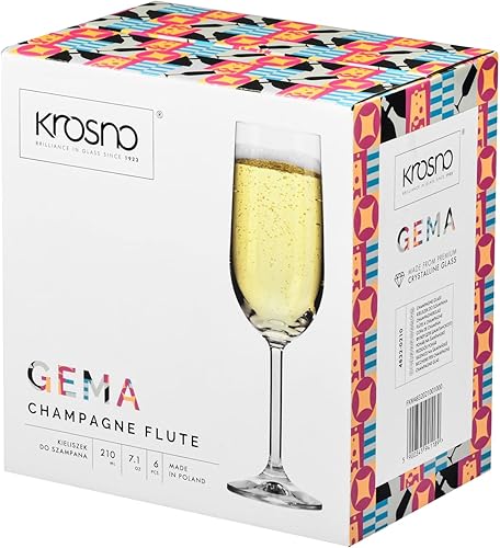 Krosno GEMA - Lot de 6 flûtes à champagne et à champagne - Design classique - 210 ml - Verre à large calice - Verre transparent - Pour la maison, les restaurants et les fêtes - Passe au lave-vaisselle