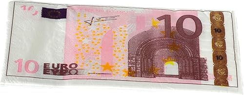 Lot de 10 serviettes double voile pour fête, anniversaire, thème billet de 10 euros, 34 x 33 cm