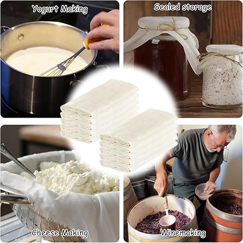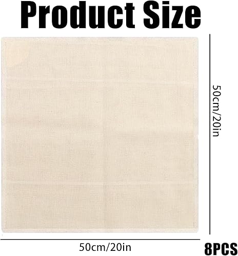 8 Pièces Étamine Alimentaire,50x50cm Réutilisables et Lavables Cheesecloth,Mousseline Alimentaire,En mousseline lavable pour Filtrer Fromage Beurre Jus Lait de Noix