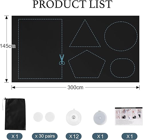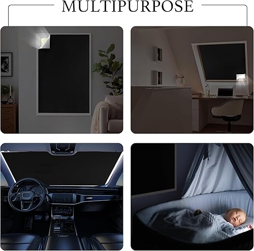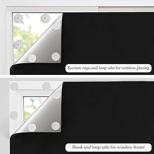 PONY DANCE Rideau Occultant, Portable, Ajustable, Découpable et Amovible, Isolation Thermique pour Fenetre Chambre Salon ou Voyage, 300x145cm, Noir