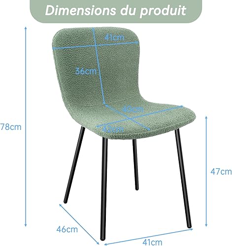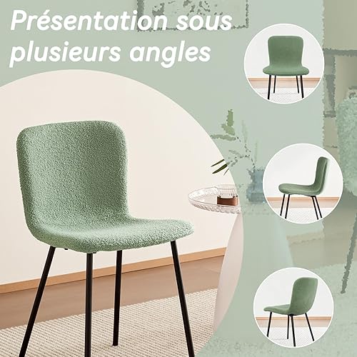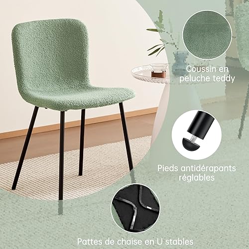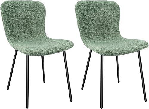 FRUOGO Chaises de Salle à Manger, Ensemble de 2, Assise en bouclé Teddy, idéales pour la Coiffeuse, Les réunions Quotidiennes et Les chaises de Salon, Pieds en métal, Vert