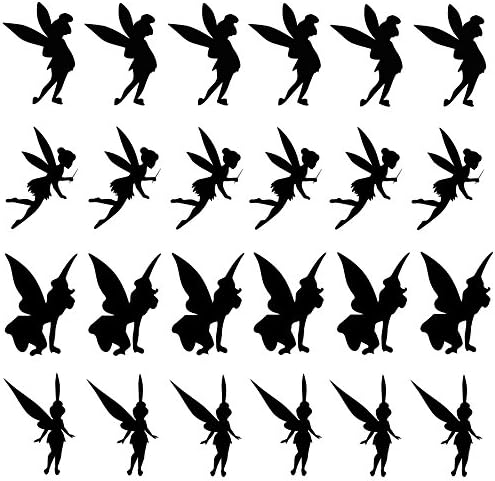 24 x Fairy Vinyl Stickers - Waterproof Decal Wine Glass Mug Wall Light Switch Car mirror (V1. Black)