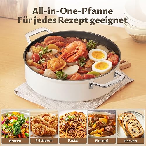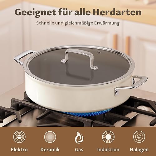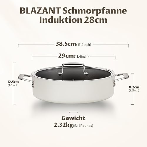 BLAZANT Sauteuse 28 cm avec couvercle 5 l, revêtement anti-adhésif, convient à tous les types de feux, passe au four, bord haut