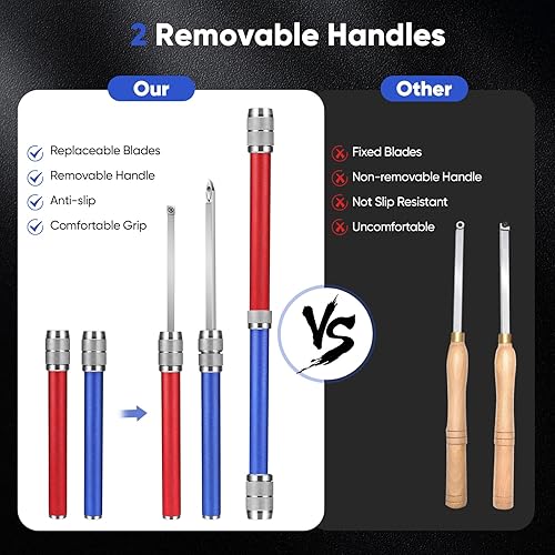 RINRI Outil De Tournage Tour,Kit d'outils de Tournage du Bois,Avec lame de rechange, poignée antidérapante à dégagement rapide, perche extensible,perche extensible,Pour la Sculpture sur Bois,DIY