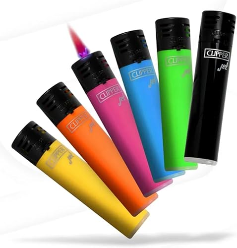 Lot 4 briquets Clipper Jet Rechargeable Chalumeau tempête électronique - Jet Flame Skiny Color X4 + 1 Cadeau RLBSL Offert !
