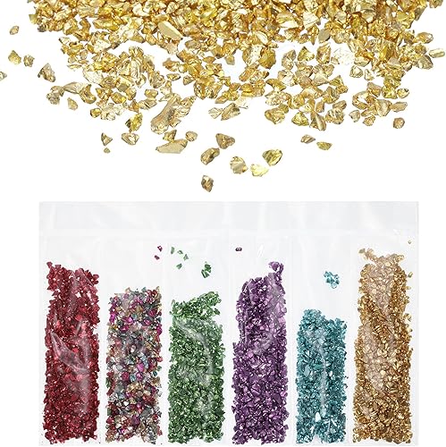 QUARKZMAN 6 Couleurs Verre A Écraser Paillettes 2-4mm Irrégulier Éclats Paillettes Métallique Grosse Paillettes Pierres (Or/Bleu/Lavande/Vert/Mixte Couleur/Rouge, 1,06oz/30g)