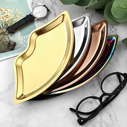 Buer Homie Plateau de service doré en forme de lèvre en acier inoxydable pour clé à bijoux