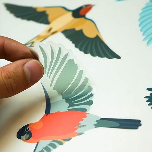 QUALIVEAU® Autocollant de protection contre les collisions d'oiseaux sur film transparent pour verre dépoli, 6 espèces d'oiseaux régionales, kit complet avec aide au collage