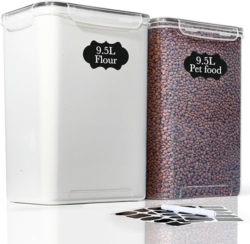 GoMaihe Lot de 2 bocaux de conservation XXL grand récipient de 9,5 L avec étiquettes et marqueurs | Boîte de rangement idéale pour 4,5 kg de riz | Couvercle hermétique | Sans BPA
