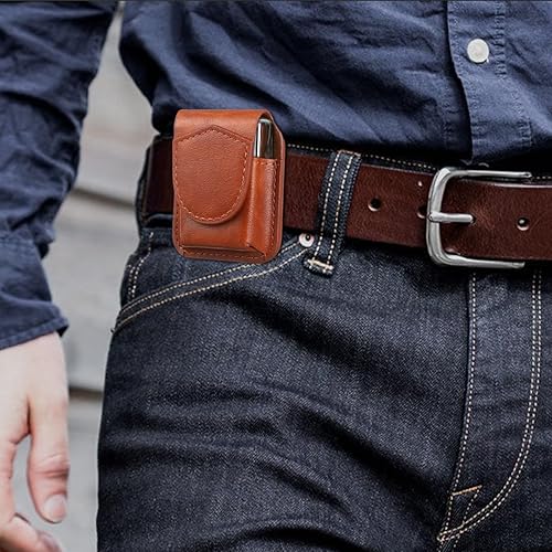 Operitacx Porte-Briquet en Cuir pour, Flip-Top Poche de Rangement protectrice avec Boucle métallique, Poche à Briquet en Cuir, pour Hommes et Femmes, 7.5 * 6 * 3cm