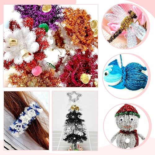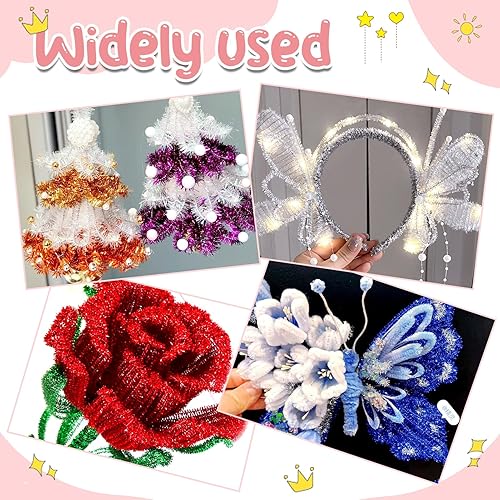 TOAOB 100 Pièces Tiges de Fils Chenille Colorés Glitter Pipe Cleaner Couleurs Assorties 6mm x 300mm pour DIY Artisanat Décoration Fournitures Loisirs Creatifs