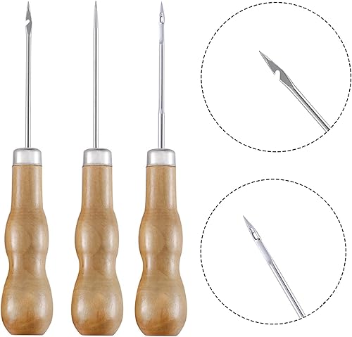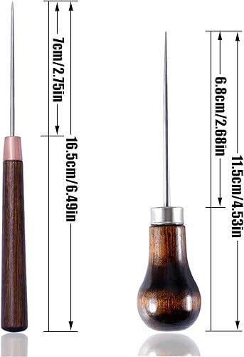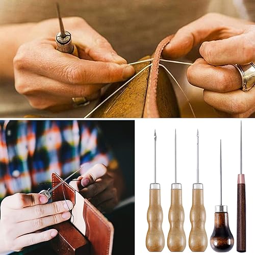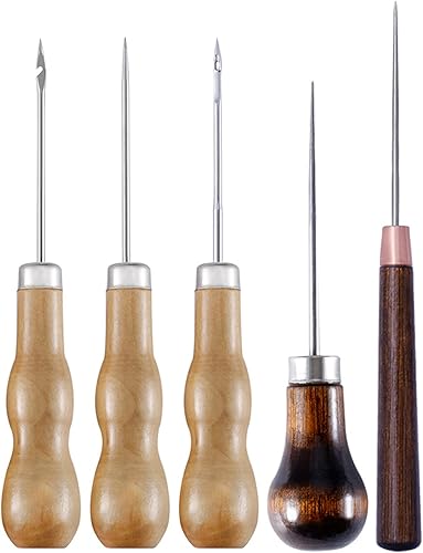 Alène de Couture en Cuir 5 Pièces Alène en Cuir Poinçon Cuir Outil poinçon manche en bois Outil De Couture Bricolage Cuir Artisanat Couture Poinçon Cuir Outil De Couture Poinçon de Perforation en Cuir