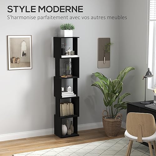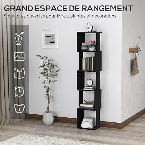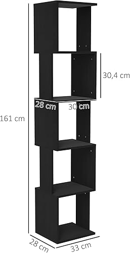 HOMCOM Bibliothèque étagère de Rangement à 5 Niveaux étagère à Livres en Bois, étagère Cube Rangement pour Salon, Bureau à Domicile, 33 x 28 x 161 cm, Noir